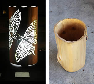 チェーンソーアートにも取り組み、間伐材を利用した「ランプシェード」の考案者でもある。