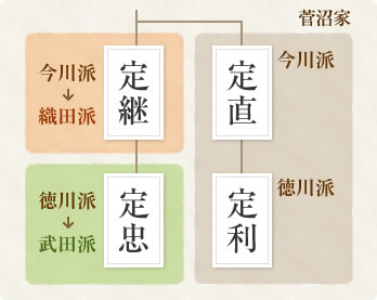 - 菅沼氏が二分されたのは、弘治二年(1556)、当時の田峯城城主・菅沼定継がきっかけでした。今川氏から尾張の織田氏に寝返った定継は、今川氏から討伐を受けて敗北。当人は自刃、菅沼宗家滅亡の危機に立たされました。