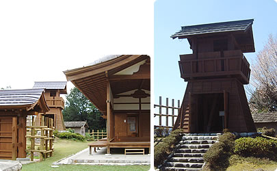 - 現在、城跡には本丸御殿、本丸大手門、搦手門が復元されています。丘陵地にある中世戦国時代の山城で、物見台からは寒狭川を見下ろすこともでき、四方八方に四季折々の山を眺めることができます。